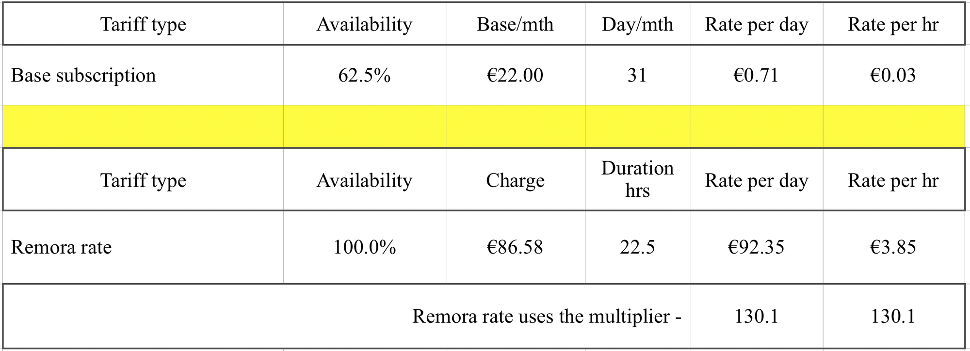 Week’s allocation 36% used in return for 35 hours light use; amortising this over a week means I get about 80 hours, allowing for some technical work, out of 168 hours per week;