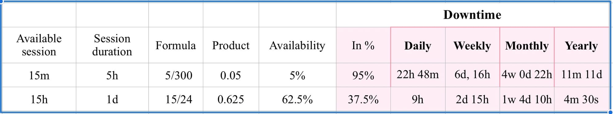 - An availability of 62.5%, which is well outside industry standards.